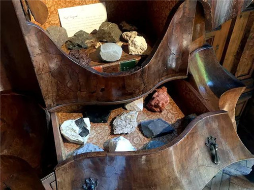 倫敦藝術(shù)家 Faye Toogood 在旅行途中收集來的各式各樣的石頭,被放在一個(gè)古老的、異形的裝飾柜內(nèi)。