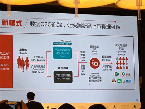 騰訊負責(zé)快消行業(yè)廣告業(yè)務(wù)的工作人員劉潔告訴界面記者,騰訊有一個閉環(huán)。線上有公眾號、朋友圈,線下有卡券和微信支付?!澳阕隽艘粋€新品廣告后,線上有哪些人點擊來廣告,而線下有多少人、什么人在買,我們后臺都會幫你做用戶和場景分析,”劉潔說。