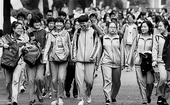湖州中學考點,考生面帶笑容走出考場。 陸偉 楊斌英 攝