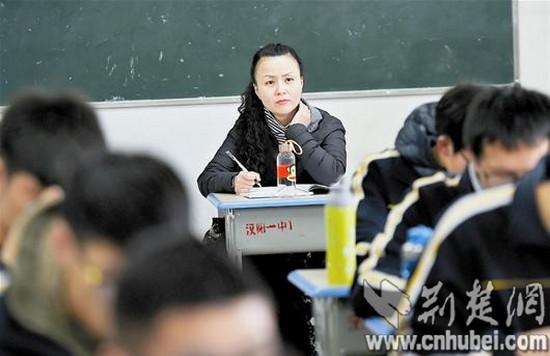 9日上午10時30分許,記者首先來到漢陽一中高二(15)班。這是一堂歷史課,老師講得神采飛揚(yáng),同學(xué)們聽得津津有味。教室最后一排坐著一位中年女士,時而認(rèn)真聽講,時而埋頭記筆記。