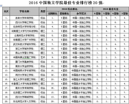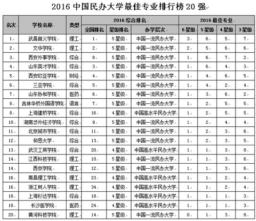 在最新2016中國(guó)各地區(qū)大學(xué)最佳專業(yè)排行榜中,北京市高校有74專業(yè)榮膺中國(guó)七星級(jí)專業(yè),蟬聯(lián)第1,上海列第2,江蘇居第3,湖北列第4,湖南居第5。在2016中國(guó)民辦大學(xué)最佳專業(yè)排行榜中,武昌首義學(xué)院、文華學(xué)院、西安外事學(xué)院、山東英才學(xué)院和西安歐亞學(xué)院名列前5強(qiáng)。在2016中國(guó)獨(dú)立學(xué)院最佳專業(yè)排行榜中,吉林大學(xué)珠海學(xué)院、四川大學(xué)錦江學(xué)院、北京師范大學(xué)珠海分校、河南理工大學(xué)萬(wàn)方科技學(xué)院和云南師范大學(xué)商學(xué)院名列前5強(qiáng)。