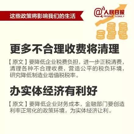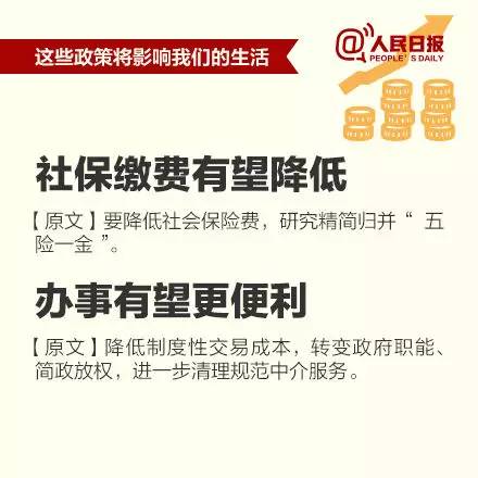 這次會議還用十個“更加注重”指明了新常態(tài)下應(yīng)該“怎么干”。更為關(guān)鍵的是,這個看似“高大上”的經(jīng)濟工作會議,其實離你我并不遙遠:社會保險費有望降低、非戶籍人口也能住公租房、鼓勵房企適當(dāng)降房價……中央敲定下的這些事,新的一年毫無疑問將給你我生活帶來深刻影響。