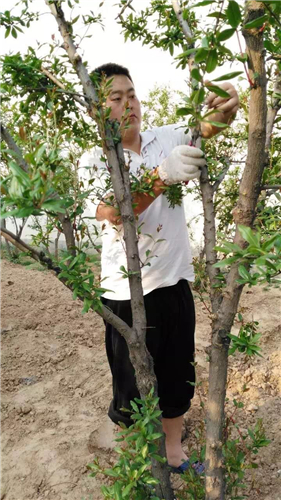 農(nóng)業(yè)生產(chǎn)過程的管理,對石榴的品控尤為關(guān)鍵。既然是農(nóng)民就要會種地,種石榴。要學(xué)習(xí)扦插樹苗、修剪果樹、施肥、翻地。父輩是靠經(jīng)驗,小綱他們照著做,慢慢發(fā)現(xiàn)經(jīng)驗有時也會錯,每個人說法不一,這就要靠自己一點點去實踐,他們也會把自己摸索的技術(shù)通過萬氏石榴合作社的微信公眾號分享給更多人。