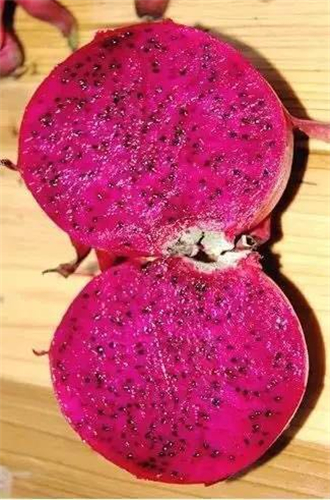 紅心火龍果是火龍果中的稀有品種,在市面上并不常見。它富含花青素,甜度遠(yuǎn)高于普通白心火龍果。金田地園區(qū)的火龍果引自我國臺(tái)灣紅水晶品種,整個(gè)果的甜度都非常均衡,連近皮部也甜。它的甜度不一定最高,但它的口感數(shù)一數(shù)二。