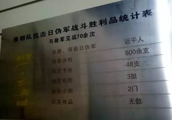 從1939年成立到1945年配合主力部隊解放新安城,由30多人發(fā)展到100多人。雁翎隊利用冰上水上優(yōu)勢,與敵人交戰(zhàn)70余次,僅犧牲8人,卻擊斃、俘獲了日偽軍近千人,繳獲大量軍火和軍用物資。