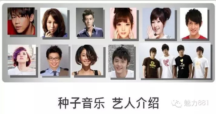 種子音樂(lè)公司甫成立張信哲、周傳雄(小剛)、黃鶯鶯、于臺(tái)煙等唱銷天王天后即紛紛投身,天王天后的加持讓種子音樂(lè)一成立即于華語(yǔ)樂(lè)壇打出響亮品牌名號(hào)。公司團(tuán)隊(duì)也以清新的音樂(lè)制作水平和創(chuàng)意包裝成功營(yíng)銷,推出專輯張張叫好叫座,笑傲唱片銷售市場(chǎng)。2003年起種子音樂(lè)相繼在臺(tái)北,北京兩地成立跨兩岸的操作平臺(tái),努力開(kāi)拓唱片產(chǎn)業(yè),成為唱片業(yè)者跟進(jìn)的指標(biāo)。隨著公司發(fā)展日益蓬勃壯大吳克群、光良、許茹蕓、伊能靜、溫嵐、江美琪、許哲佩、王菀之、周蕙、郭書(shū)瑤(瑤瑤)、曾昱嘉、曹格、馬修連恩、陳冠希、張棟梁、戴佩妮等集結(jié)音樂(lè)創(chuàng)作與歌唱實(shí)力兼具的華語(yǔ)樂(lè)壇重要歌手,紛紛投靠或加盟種子音樂(lè),成功再創(chuàng)事業(yè)高峰。種子音樂(lè)集團(tuán)為華人娛樂(lè)產(chǎn)業(yè)重要的指標(biāo),以先驅(qū)姿態(tài)縱橫唱片市場(chǎng),在實(shí)體唱片產(chǎn)業(yè)日漸勢(shì)微,無(wú)線增值業(yè)務(wù)市場(chǎng)不斷擴(kuò)張的今天,種子音樂(lè)集團(tuán)早在多年前就致力于無(wú)線增值業(yè)務(wù)市場(chǎng),不拘泥于形式,將各種可能無(wú)限發(fā)揮,在新的市場(chǎng)環(huán)境下再展音樂(lè)產(chǎn)業(yè)輝煌!