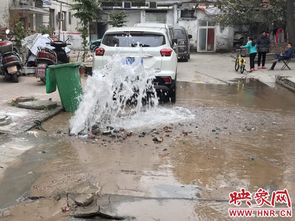 映象網(wǎng)快訊(記者 邱延波 文/圖)11月19日,鄭州桐淮小區(qū)南家屬院19號樓前,因地下自來水主管道爆管導(dǎo)致路面噴出2米多高的“噴泉”,白白浪費掉兩三個小時的自來水。一輛轎車壓住閥門井蓋導(dǎo)致無法關(guān)閉閥門,而車主在黃河邊,下午才能回來,工作人員只好把小區(qū)的總閥門關(guān)閉。19日上午9時許,桐柏路汝河路口東南角處的桐淮小區(qū)南院19號樓2門洞前的自來水地下管道爆管現(xiàn)場,小區(qū)水泥路邊爛個洞,噴出高高的水柱,小區(qū)道路上全是積水。