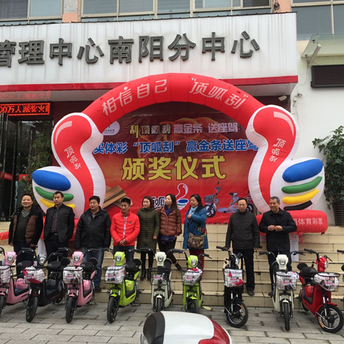 10月28日 河南體彩安陽分中心向獲獎(jiǎng)彩民頒發(fā)49輛電動(dòng)車