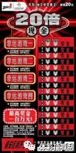 “20倍現(xiàn)金”單張彩票共有20次中獎機(jī)會,最高獎金100萬元。票面共有五組游戲,簡單易玩、新鮮刺激。其中,主游戲?yàn)椋汗伍_覆蓋膜,在任意一場游戲中,如果你的號碼與中獎號碼相同,即中得該場游戲右方所示的金額;如果在任意一場游戲中,出現(xiàn)倍數(shù)標(biāo)志“2X,3X,5X,10X或20X”,即中得該場游戲右方所示金額乘以該場游戲所出現(xiàn)的倍數(shù)。其它四場幸運(yùn)游戲分別為:在幸運(yùn)游戲區(qū)刮開覆蓋膜,如果出現(xiàn)兩個相同的標(biāo)志,分別可中得50元、100元、200元和500元。所有游戲中獎獎金兼中兼得。