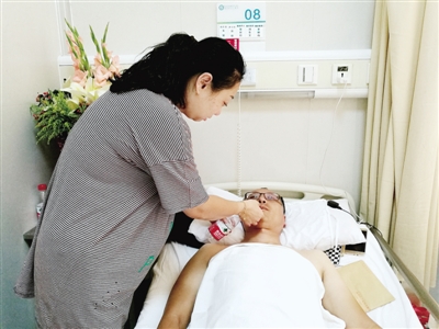 馬衛(wèi)東躺在病床上,妻子蘇娟陪護一旁,安慰老公不要擔心家里的事情,讓他安心靜養(yǎng)。
