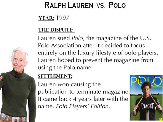 糾紛:Ralph Lauren禁止美國馬球協(xié)會雜志在馬球運動配件方面的產(chǎn)品使用“Polo”名稱