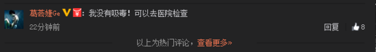 微博發(fā)出后,有網友問葛薈婕是否吸毒了,葛薈婕評論中回復“我沒有吸毒!可以去醫(yī)院檢查”。