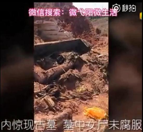 7月28日,在上饒市弋陽縣新看守所建筑工地,挖出一個(gè)古墓,現(xiàn)場掘出一口棺材,并發(fā)現(xiàn)一具保存尚為完好、身著疑似名門貴族服飾的女干尸。而在半年多前,2016年11月7日,同樣在江西上饒,上饒縣石獅鄉(xiāng)王家壩白領(lǐng)小組一處施工工地發(fā)現(xiàn)一處古墓。