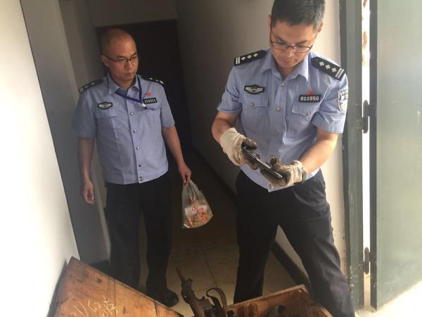 周向陽(右)在相關(guān)單位檢查清點槍支。 本組圖片 南京警方提供