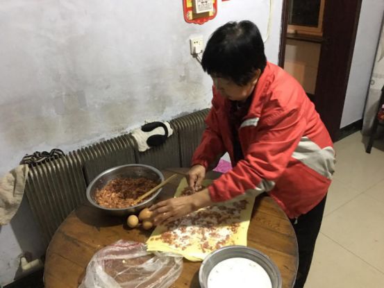 2017年初夏,因為我身體抱恙,還在腦梗塞恢復期的母親同父親來城市里陪伴我。母親語言、行動遲緩,卻一直堅持給我做飯。今年,在老家的除夕前夜,母親說去年因為生病動彈不得,今年好些了,一定要給我和哥哥姐姐們做“卷簽子”(老家的一種蒸食:用肉餡、淀粉、雞蛋清放到干豆腐上,卷成筒狀蒸熟后切片即食)。