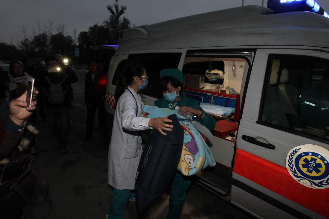 17:10分,救護(hù)車達(dá)到,醫(yī)護(hù)人員飛奔接孩子。