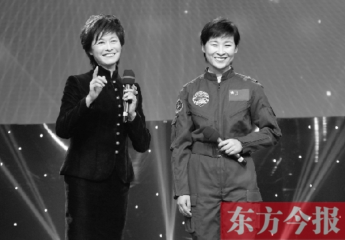 當一身藍色航天服的劉洋出現(xiàn)時,頒獎現(xiàn)場頓時響起熱烈的掌聲。