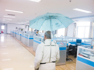 昨日,康明智老人當(dāng)著記者的面,演示起“傘架”的使用方法?!皞慵堋庇刹讳P鋼管制成,“傘架”上方的兩個(gè)掛鉤可直接掛在人肩膀上(如圖),掛鉤上方則是一根不銹鋼管,鋼管上裝上了夾子,用于固定雨傘,鋼管里面又裝上轉(zhuǎn)軸,可以來回轉(zhuǎn)動(dòng)雨傘的方向,掛鉤下面則用兩根粘膠帶連接固定在人的腰部。