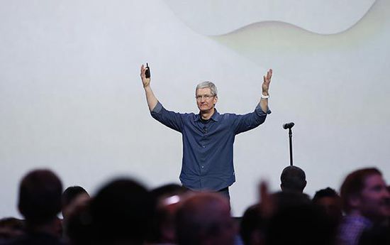 蘋果總裁庫(kù)克在發(fā)布會(huì)上發(fā)布iPhone 6、iPhone 6 Plus和Apple Watch