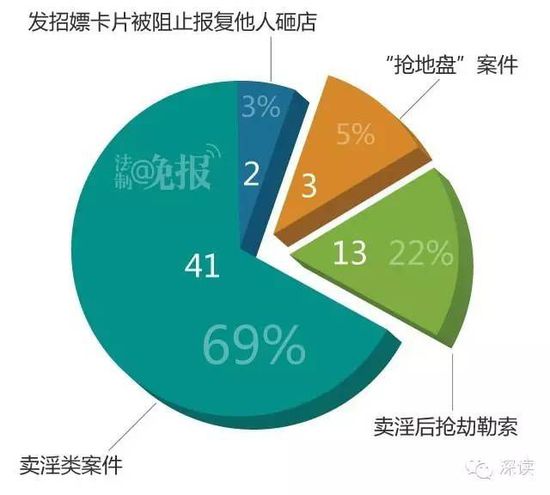 “搶地盤”案件發(fā)生了3起。賣淫后搶劫勒索案則發(fā)生了13起。