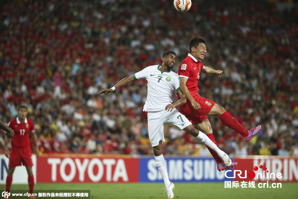 第21分鐘,中國(guó)隊(duì)前場(chǎng)反搶,于海和武磊打出快速反擊,于海強(qiáng)突橫傳門(mén)前,被沙特后衛(wèi)奧馬爾頭球解圍出底線。比賽進(jìn)行到25分鐘之后,沙特隊(duì)更多的利用腳下技術(shù)的優(yōu)勢(shì)打出小范圍配合,不過(guò)中國(guó)隊(duì)整體防守較為嚴(yán)密,并且通過(guò)積極地防守打出快速反擊威脅對(duì)方球門(mén)。