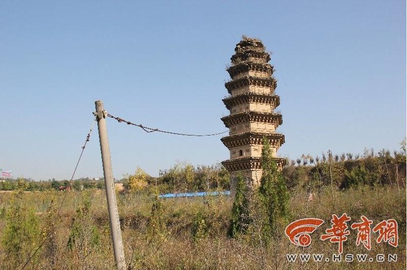 12日,住在離塔不遠處的村民趙先生告訴華商報記者,在他的印象中,這座塔發(fā)生傾斜已經(jīng)有20多年了,大約在2005年前后。銅川新區(qū)管委會的工作人員在塔身上系上了一根鋼索,目的是為防止塔身繼續(xù)傾斜?!摆s緊把這塔保護一下,再不保護這塔可能就沒有了?!壁w先生說,除了傾斜、風(fēng)蝕,導(dǎo)致塔體破壞外,偶爾還有盜墓賊光顧,他們在他周圍打了好幾個盜洞,這也加速了塔的破壞。