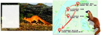 居住在鼓樓區(qū)煤炭港附近的知情居民武先生也是一名動物攝影愛好者,據(jù)他多年的攝影經(jīng)驗和追蹤觀察,總結(jié)勾畫出黃鼠狼在南京城北的一張“覓食行蹤圖”,2011年黃鼠狼出沒在下關多倫路一帶的居民區(qū),那里居住密集,也“養(yǎng)肥”了不少老鼠,它們成了黃鼠狼的美餐,據(jù)他觀察,每只黃鼠狼一夜間可捕食6只老鼠。2012年,多倫路一帶開始動遷,黃鼠狼們轉(zhuǎn)戰(zhàn)方家營,仍以老鼠為主食。之后黃鼠狼又來到幕府山一帶,主要以野兔、昆蟲和蚯蚓為食。今年黃鼠狼把目光瞄準到揚子江大道濱江外灘,那里臨江多水,在傍晚退潮時,小魚小蝦都“跳到了黃鼠狼的口里來”。多年的黃鼠狼拍攝追蹤經(jīng)歷也使得武先生因此混出個“武大狼”的綽號。