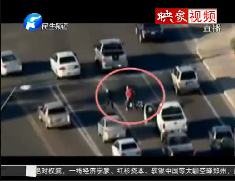 實拍交警板磚砸開車窗逼停違法貨車