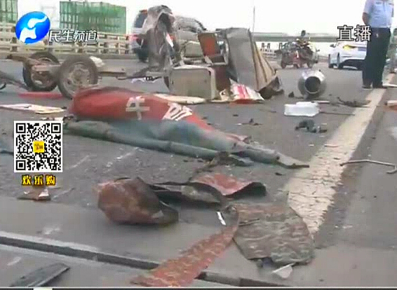電動(dòng)三輪車上高速被撞成碎片