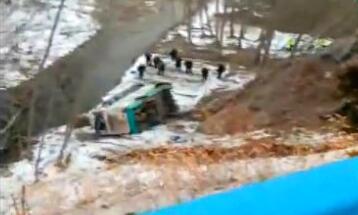 客車(chē)坐滿學(xué)生 翻進(jìn)深溝