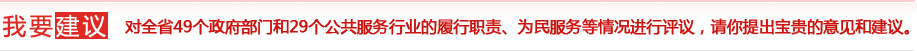 為貫徹落實黨中央、國務(wù)院關(guān)于加強作風(fēng)建設(shè)的指示精神和省政府關(guān)于"兩轉(zhuǎn)兩提"的要求,努力建設(shè)服務(wù)政府、責(zé)任政府、法治政府和廉潔政府,進一步增強公共服務(wù)行業(yè)的服務(wù)意識,切實加強政風(fēng)行風(fēng)建設(shè),省政府糾風(fēng)辦繼續(xù)在全省各級政府部門和公共服務(wù)行業(yè)開展以"樹立優(yōu)良作風(fēng),構(gòu)建和諧中原"為主題的民主評議政風(fēng)行風(fēng)活動。河南省人民政府糾風(fēng)辦委托映象網(wǎng)開通網(wǎng)上評議系統(tǒng),對全省49個政府部門和29個公共服務(wù)行業(yè)的履行職責(zé)、為民服務(wù)等情況進行評議,請你提出寶貴的意見和建議。
