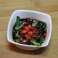 8. 香菜、醬油、糖、辣椒根據(jù)個人口味拌在一起就好,吃時蘸食。