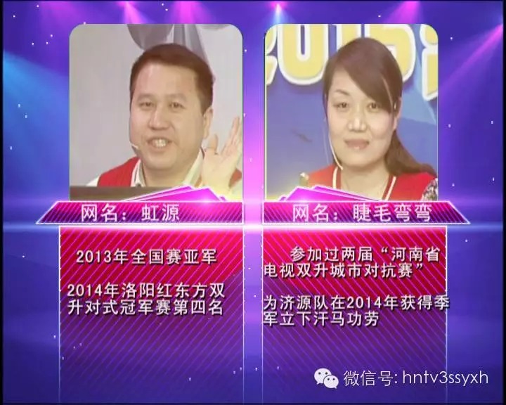 今晚將要進(jìn)行的是下半?yún)^(qū)第1輪第6場比賽,是由濟(jì)源精英“睫毛彎彎”和“虹源”對(duì)戰(zhàn)開封精英“樂在雙升”和“閑情逸趣”。