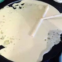 5. 倒入面糊,用小棒慢慢攤開。