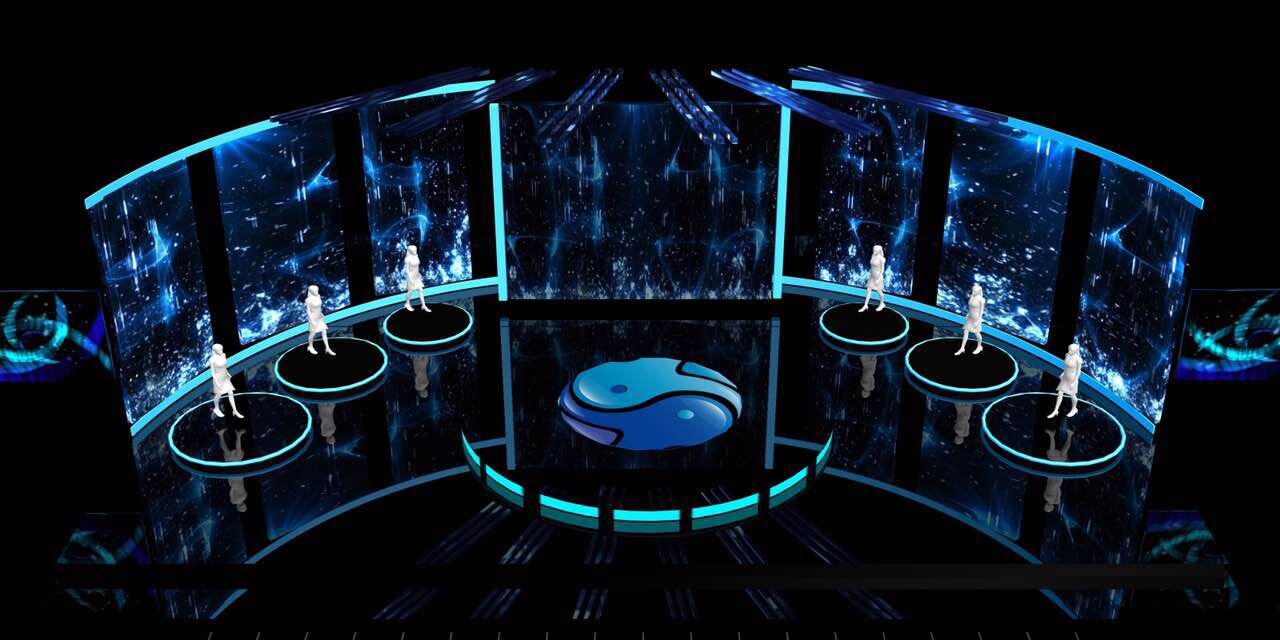 答:舞美設計是最直觀的表現(xiàn)。常規(guī)的舞美設計里,舞臺是有主持人區(qū)的,也就是舞臺中心;但這次舞臺沒有中心,大象融媒的六大媒介矩陣各居一方,分布在舞臺的六個維度上,體現(xiàn)融合之道!但僅是去除中心最直觀的表現(xiàn),不是唯一的表現(xiàn)。